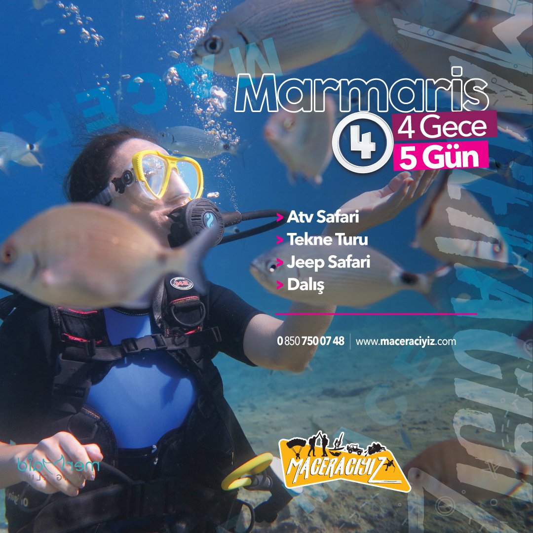Üstelik Dalış yapmak için yüzme bilmenize gerek yoktur. Dalışlarımız, profesyonel eğitmenler eşliğinde 2 ayrı noktada gerçekleşmektedir. Cennet adası, keçi adası, turunç koyları dalış lokasyonlarımızdır. Her dalışınız 15-20 dk aralığında gerçekleşecektir ve 2 ayrı deneme dalışı yapacaksınız.